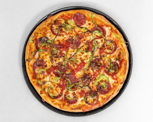 Made with Italian tomato, mozzarella, hot salami, capsicum and chilli.