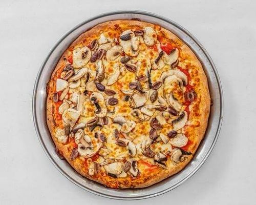 Made with Italian tomato, mozzarella, mushroom, olives, truffle oil and shaved parmesan.