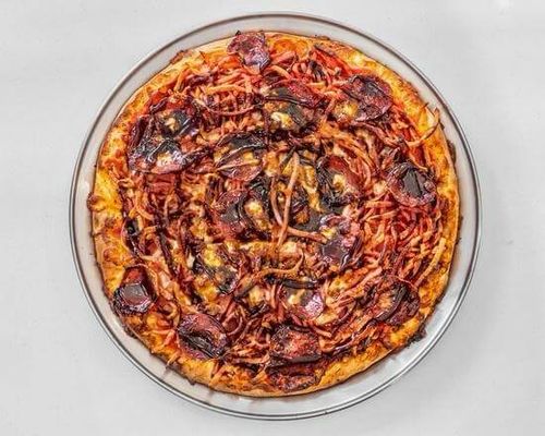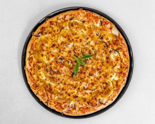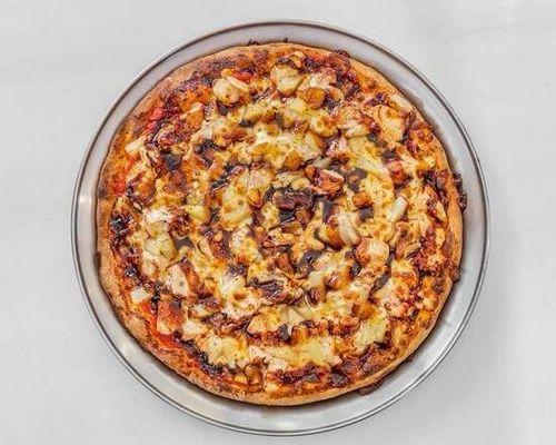 Made with onions, mozzarella, pineapple, pulled chicken and barbecue sauce.