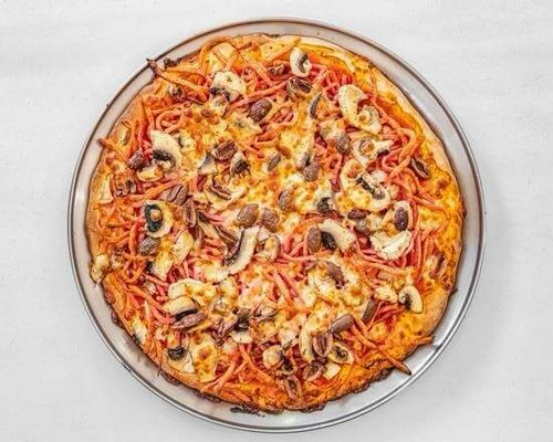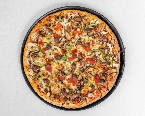 Made with Italian tomato, mozzarella, mushroom, capsicum, onion and olives.