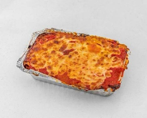 Lasagna, choice of cake, soft drink can